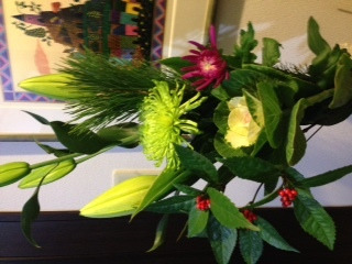 まずは、玄関にお正月のお花を飾ります